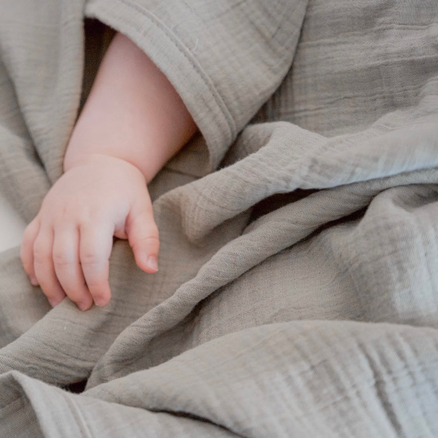 Your little one will feel safe and secure in our muslin swaddles. Made from high-quality GOTS-certified organic cotton, the material feels velvety soft against baby's delicate skin. A special wrapping technique makes our muslin swaddles ideal for swaddling. A faithful companion throughout childhood, our swaddles can also be used as a cozy play mat, towel, or as a breathable blanket in the stroller. This makes our large swaddles the perfect all-rounder, faithfully accompanying your little one all year round. Thanks to the simple and timeless colors, there's something for every taste. We wrap our comforter with a pretty ribbon – a great gift for a new baby.