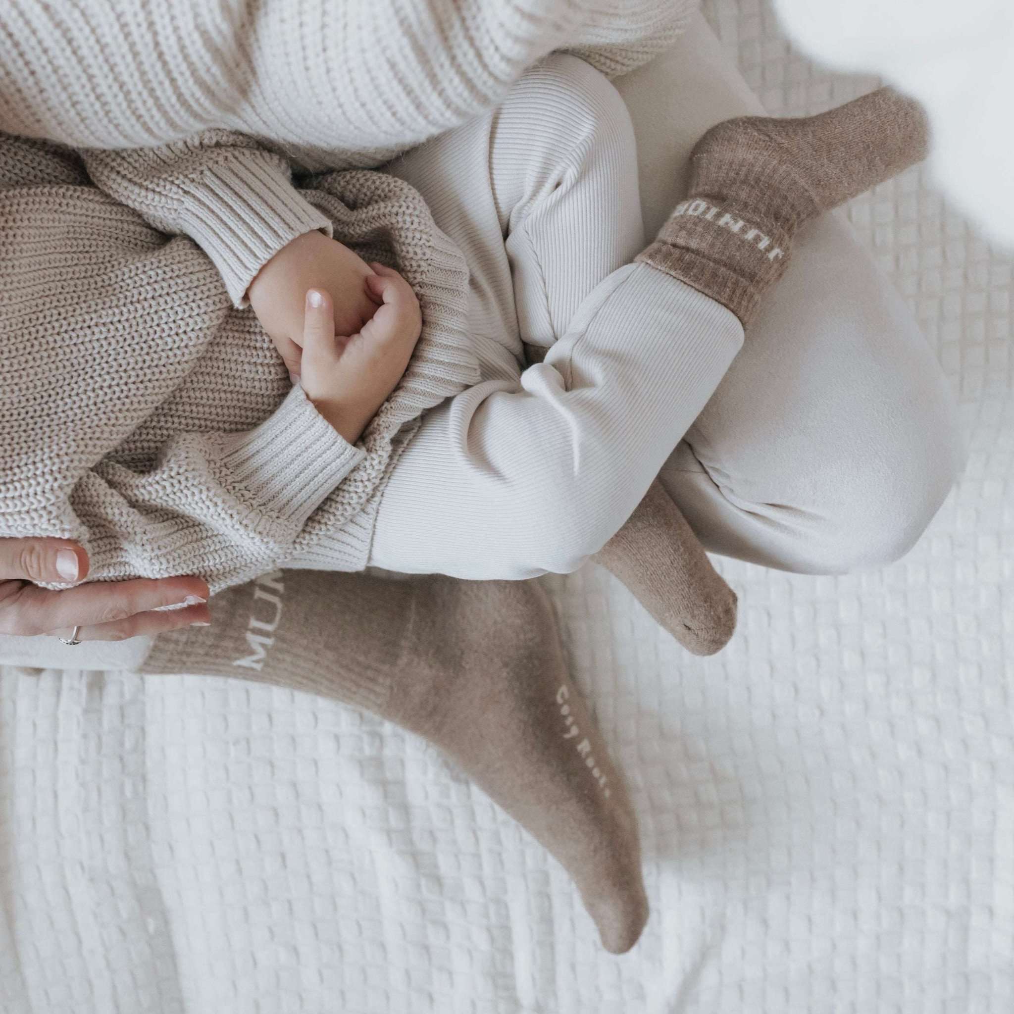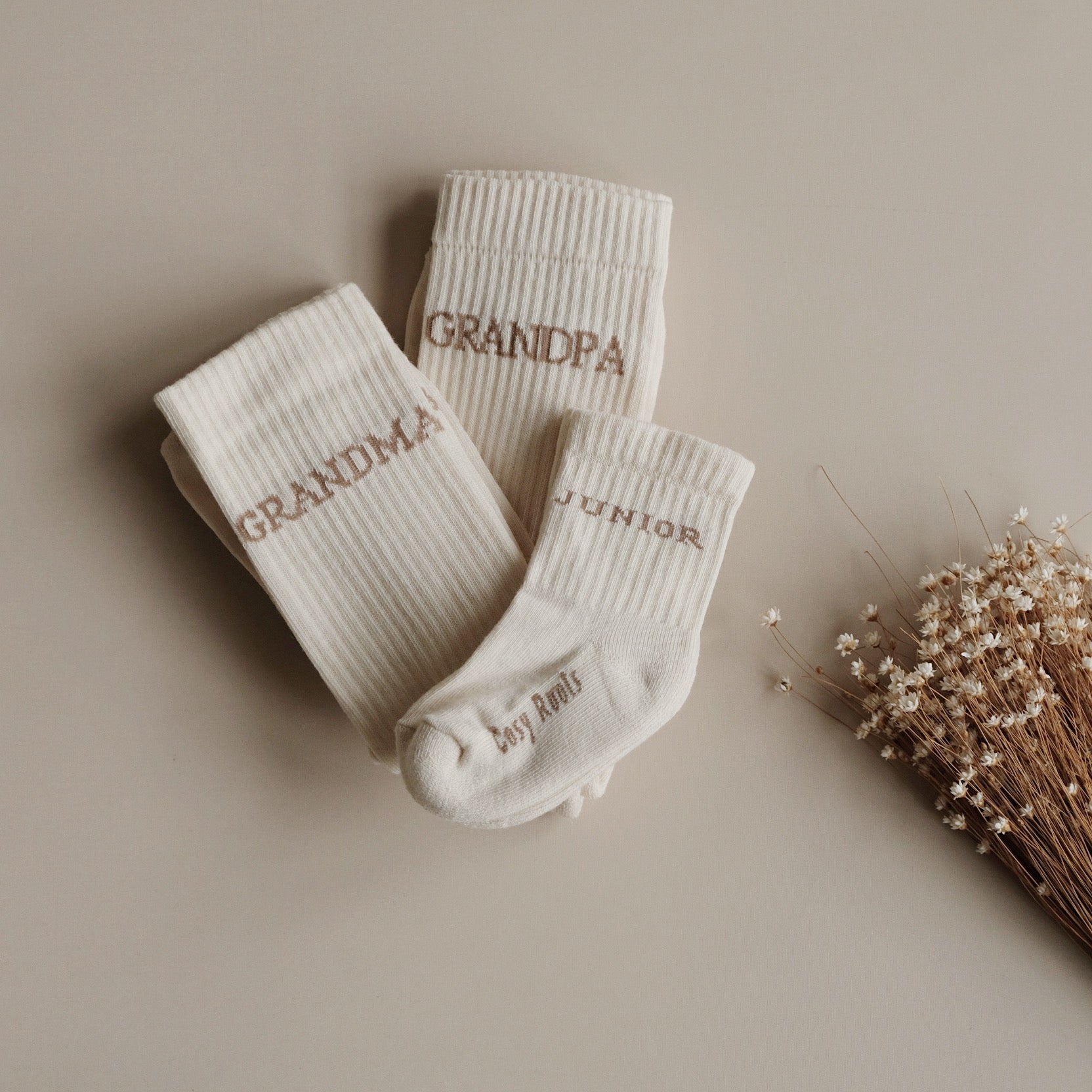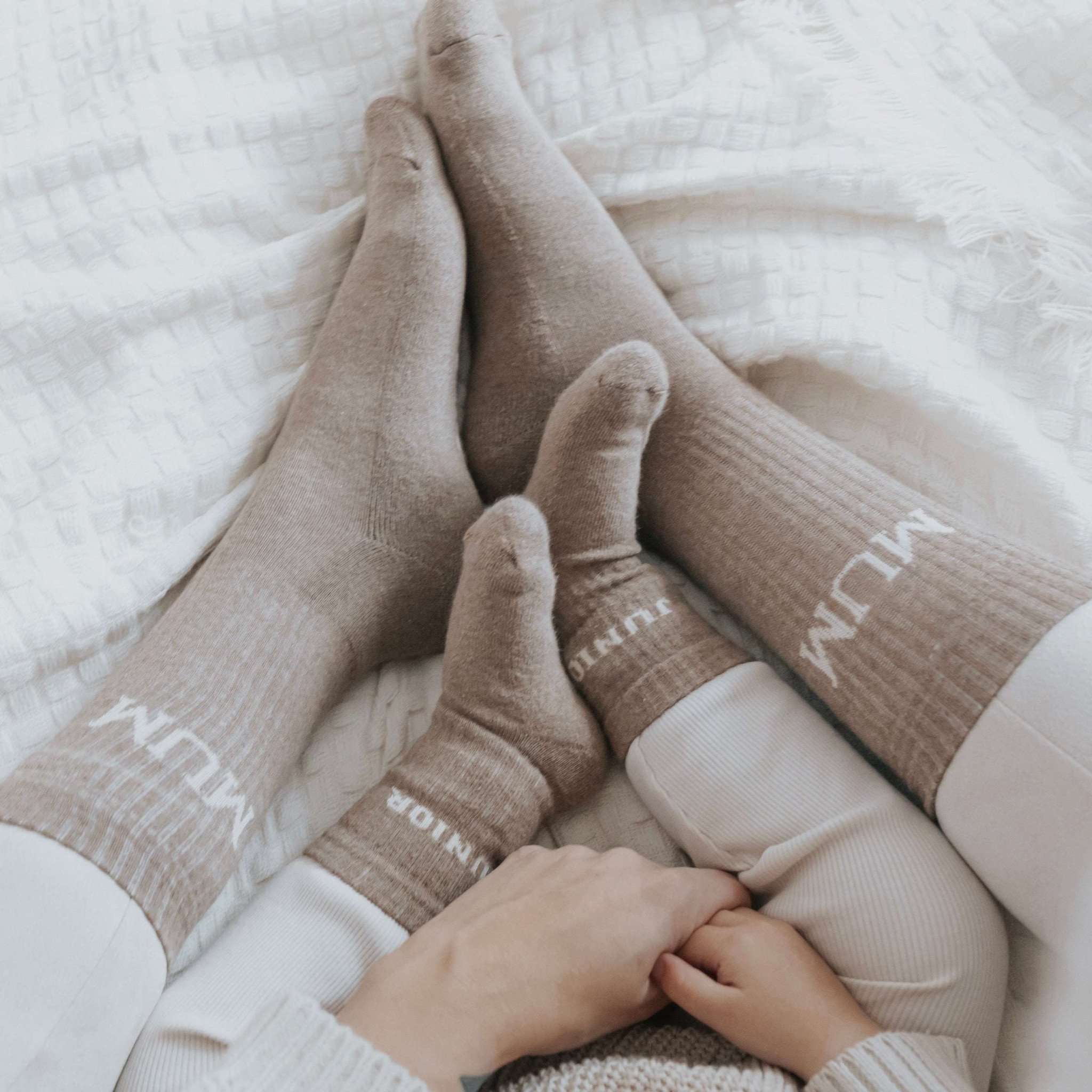 Sustainable socks made from GOTS-certified organic cotton with stylish lettering – ideal for a matching look for MUM, DAD, GRANDMA, GRANDPA, TEEN & JUNIOR!