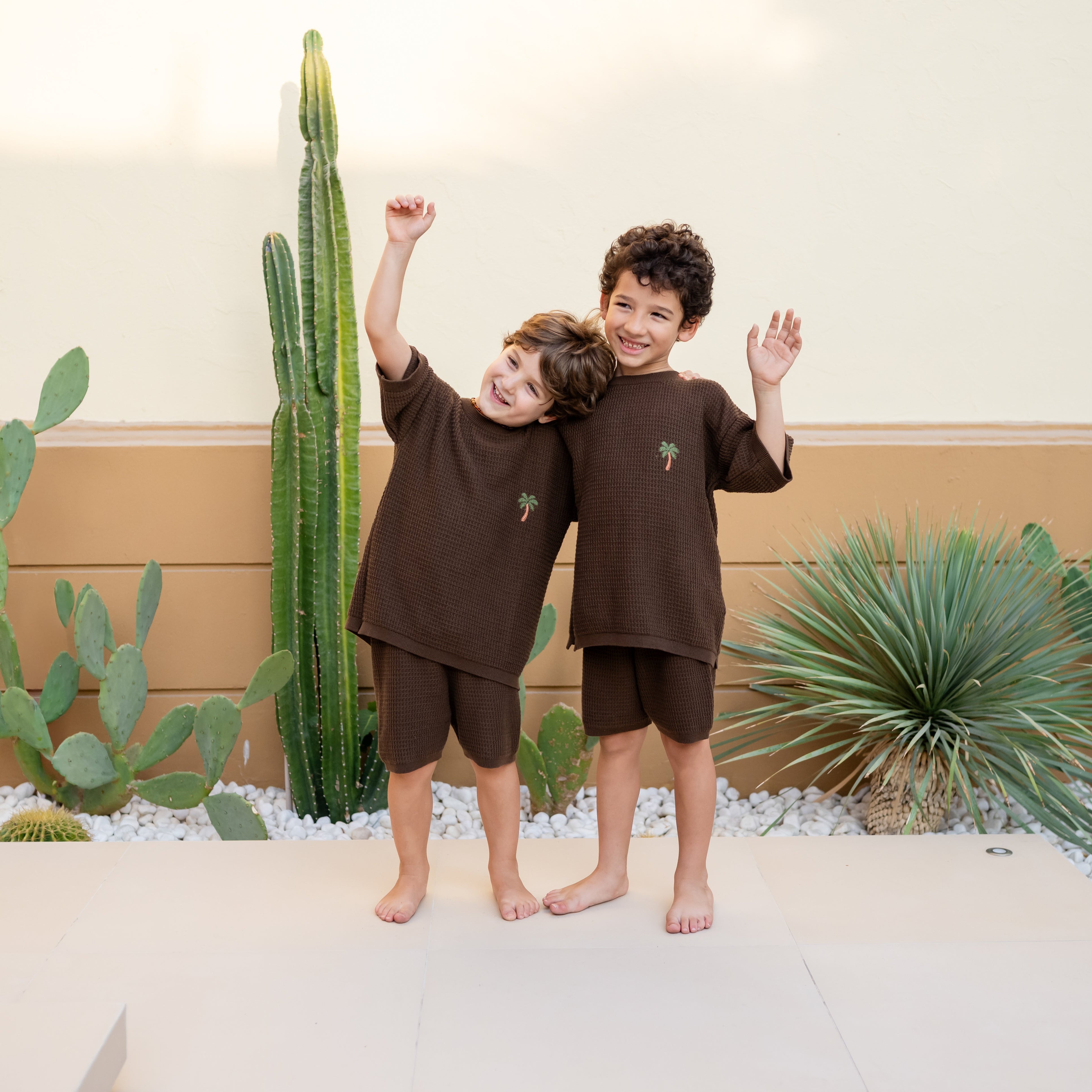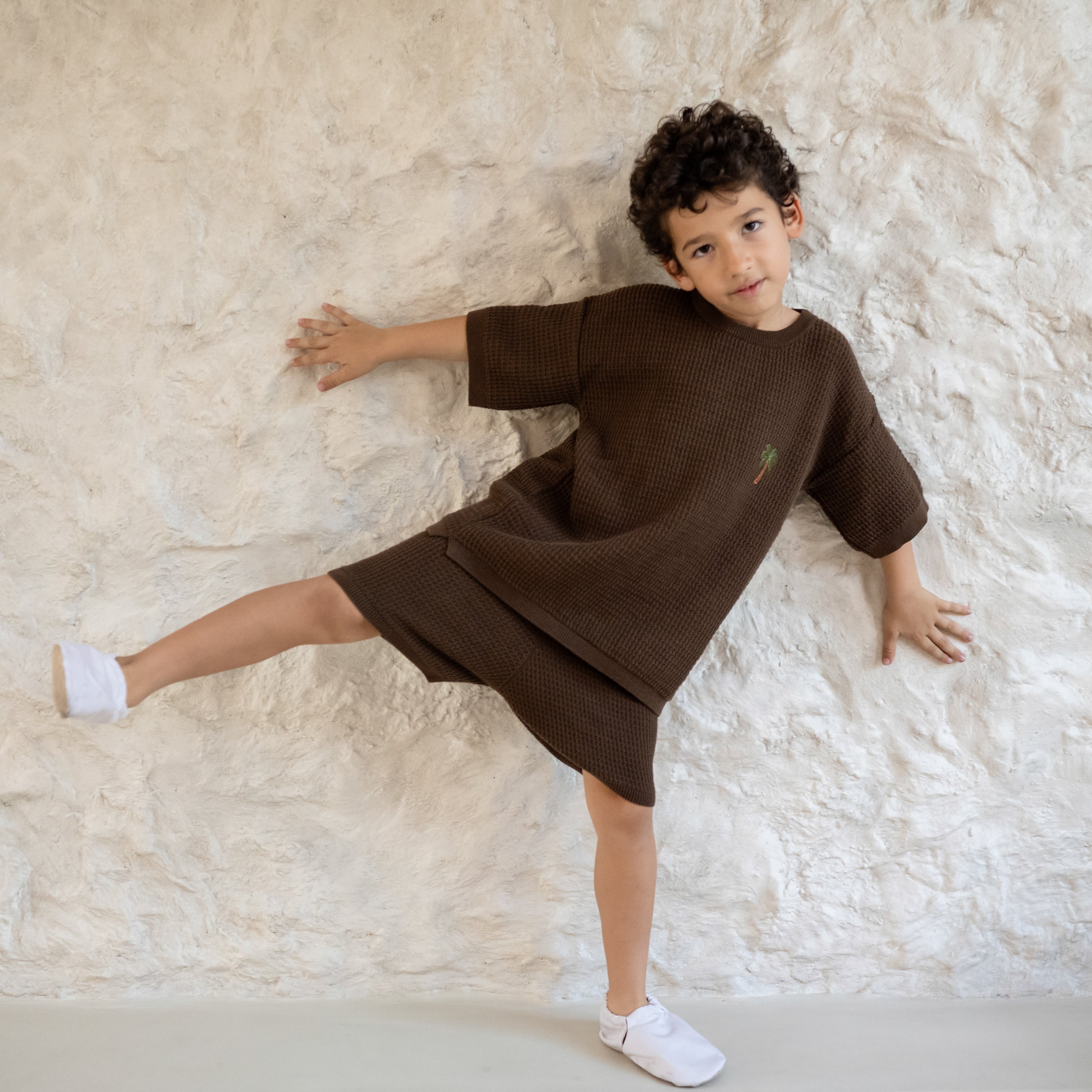 Paired with our matching Summer Knit Shorts, they create effortlessly coordinated summer looks in colours inspired by nature — Sand, Khaki and Chocolate Brown.